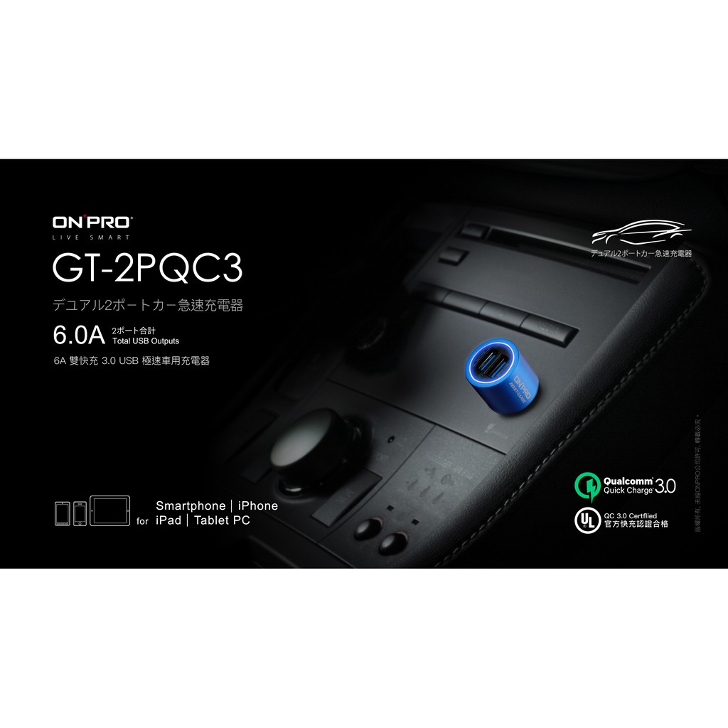 Onpro Gt 2pqc3 6a雙快充3 0急速車用充電器 Usb車充 充電器 Yahoo奇摩購物中心